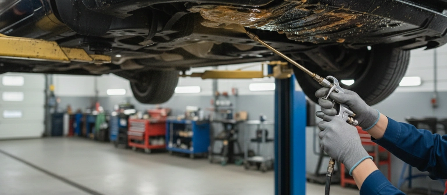 Layanan perlindungan dasar yang fokus pada bagian bawah kendaraan yang paling sering terpapar air, lumpur, dan zat korosif dari jalanan.