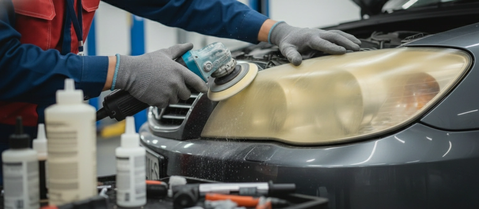 Layanan perawatan luar untuk lampu utama yang mulai terlihat kusam atau menguning akibat oksidasi cuaca dan paparan sinar matahari (UV).